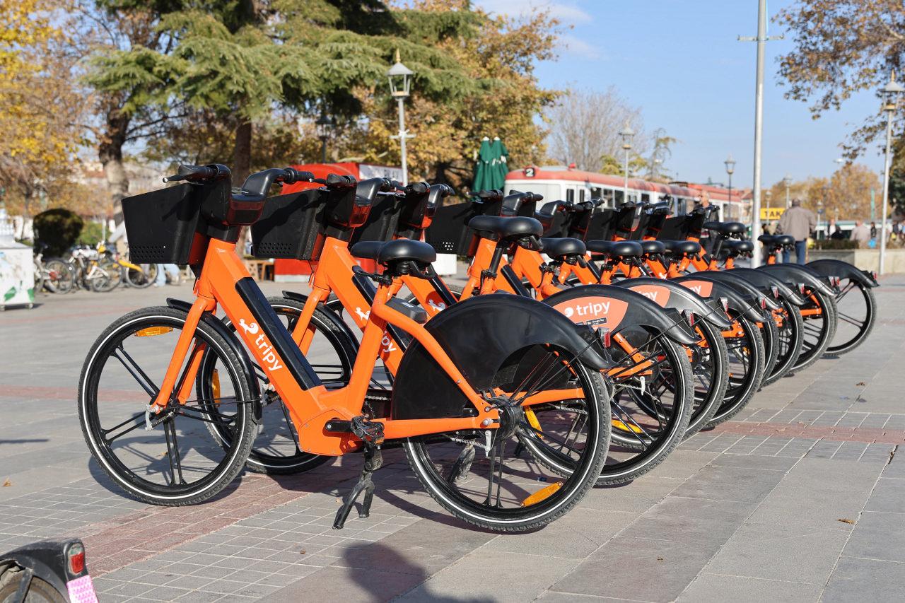Konya Büyükşehir Belediyesi iştiraklerinden KONBELTAŞ tarafından işletilen ve Tripy Bisiklet altyapısıyla çalışan sistemde ilk etapta 250 elektrikli bisiklet kullanıma alındı. Mobil uygulama üzerinden kiralanabilen bisikletler, sürüş sonunda yayalara ve araç trafiğine engel oluşturmayacak herhangi bir alana bırakılabiliyor.